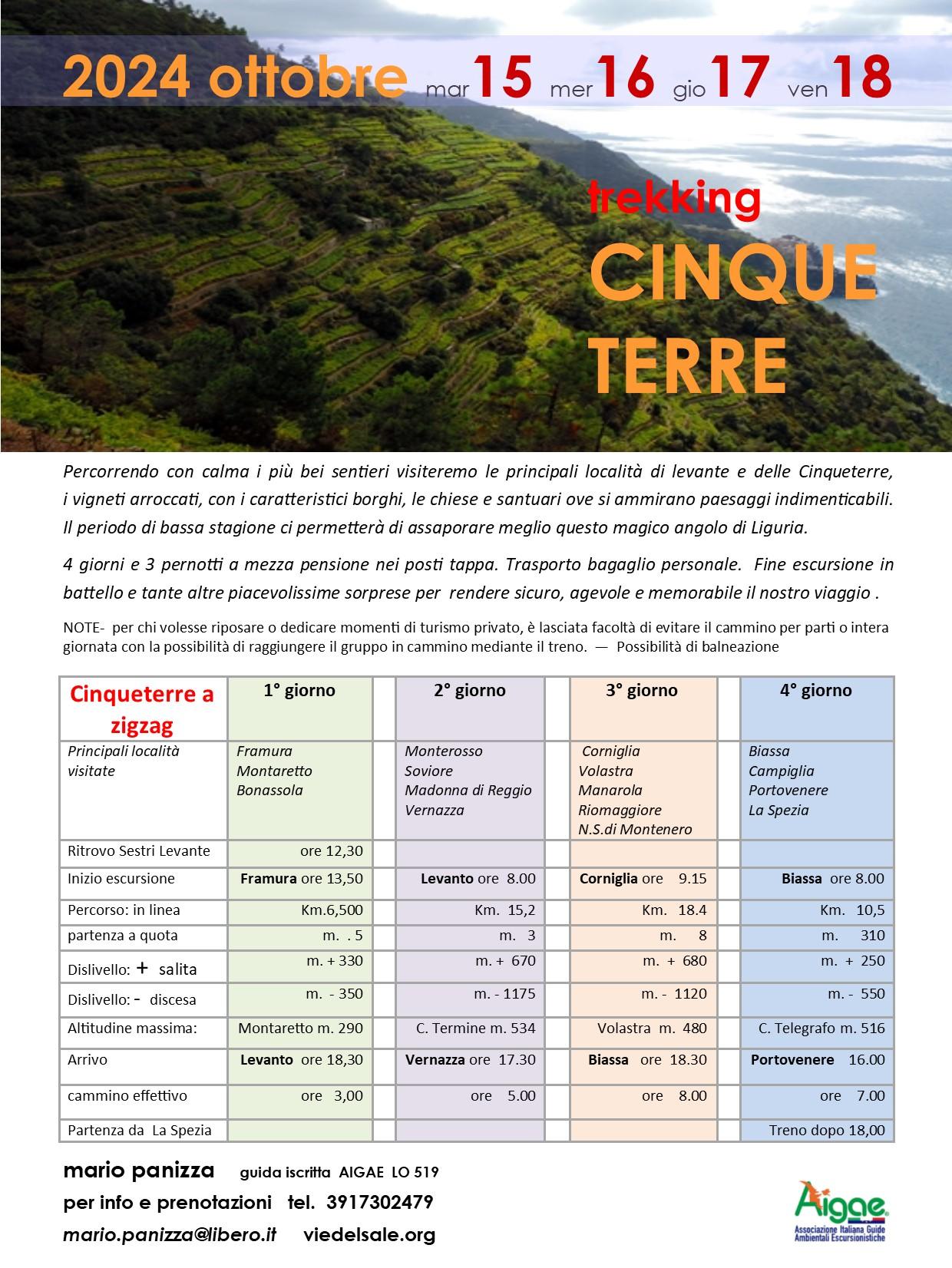 Percorrendo con calma i più bei sentieri visiteremo le principali località di levante e delle Cinqueterre, i vigneti arroccati, con i caratteristici borghi, le chiese e santuari ove si ammirano paesaggi indimenticabili. Il periodo di bassa stagione ci permetterà di assaporare meglio questo magico angolo di Liguria.